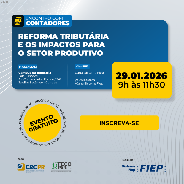 Com apoio do CRCPR e da FECOPAR, evento híbrido reunirá contadores, indústrias e especialistas para esclarecer mudanças no sistema tributário